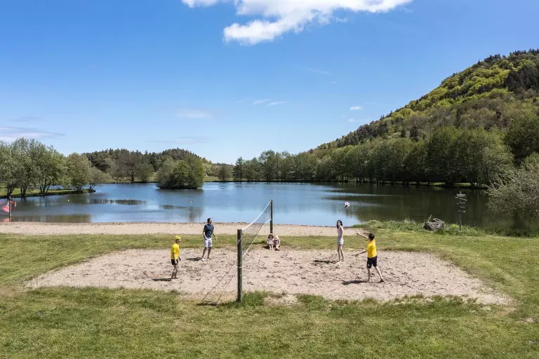 Genießen Sie das natürliche Schwimmen im privaten See des Campingplatzes, der sich über mehr als 2 Hektar erstreckt und von einer traumhaften Naturkulisse umgeben ist. Mit dem Blick auf die majestätische Burg Murol können Sie und Ihre Familie den Tag am Seeufer verbringen, wo Sie ein Beachvolleyballfeld und ein Wassersportclub mit Paddel- und Kanufahrten erwarten. Ob Entspannung oder sportliche Aktivität – der See bietet für jeden etwas!