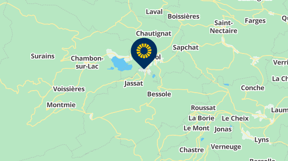 Nehmen Sie die D996 auf der rechten Seite für 5 km, fahren Sie durch Saillant und nehmen Sie die D150 auf der linken Seite für 2,8 km.