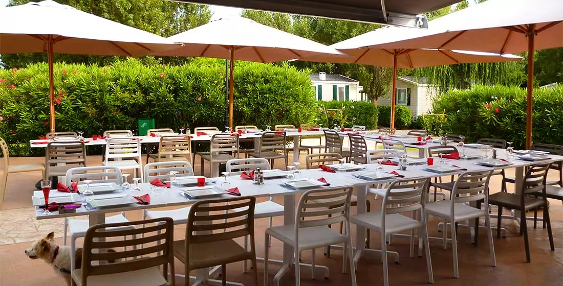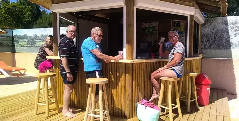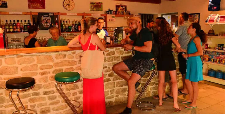 Am Eingang des Campingplatzes ist in der Hochsaison eine Bar geöffnet mit: einer Nord-Lounge-Terrasse mit sonnengeschützten Sofas, einem Innenraum zum Verfolgen Ihrer Lieblingssportveranstaltungen und einer Süd-Terrasse für sonnige Frühstücke und festliche Abende.