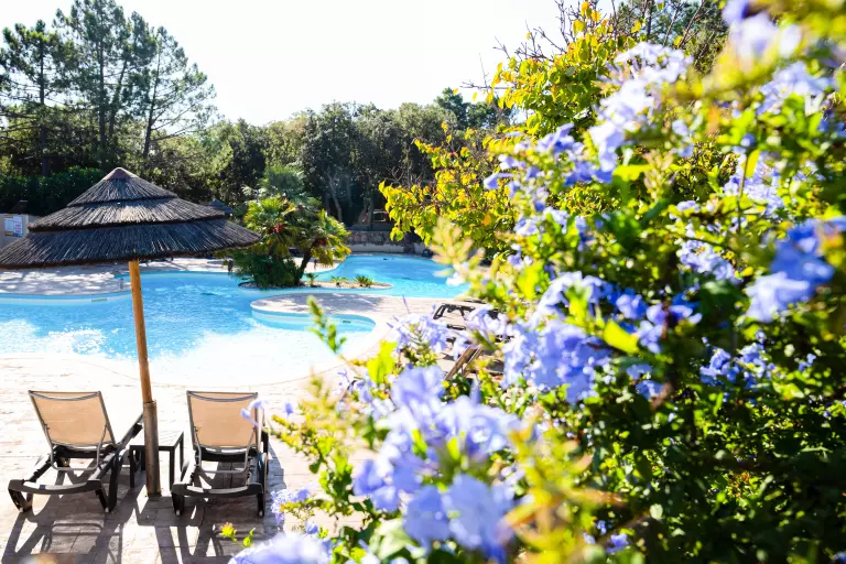 Genießen Sie vor Ort die korsische Sonne und tauchen Sie in den beheizten Außenpool (je nach Wetterlage) der Unterkunft ein, mit Sonnenterrasse, Liegestühlen und Sonnenschirmen.