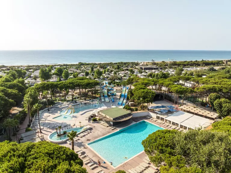 Zwischen Sète und Marseillan, eingebettet in einen malerischen Pinienwald, liegt der Campingplatz Le Castellas****. Die ideale Lage, nur wenige Schritte von der Lagune und dem Privatstrand entfernt, macht diesen Campingplatz zum perfekten Ziel für Familien und Freunde. Ein sicherer privater Zugang führt direkt zu 1,8 Kilometern feinstem Sandstrand, während der durch den Campingplatz verlaufende Radweg zu Entdeckungstouren einlädt.