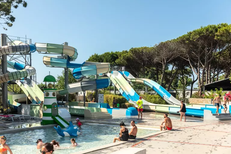 Der Wasserpark ist ein Highlight des Campingplatzes. Mit einem großen Außenpool, spannenden Wasserrutschen und reichlich Platz zum Schwimmen und Planschen ist er der ideale Ort für Spaß und Entspannung. Ob Lachen auf den Rutschen oder Relaxen am Beckenrand – hier findet jeder seinen Lieblingsplatz.