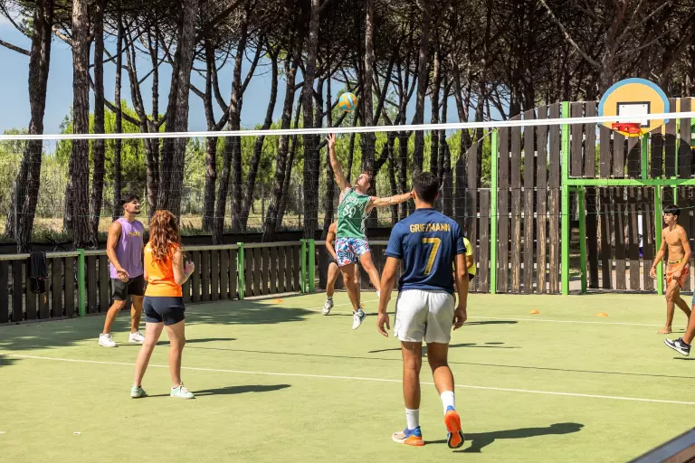 Fußball, Basketball, Volleyball und Pétanque für sportliche Matches.
