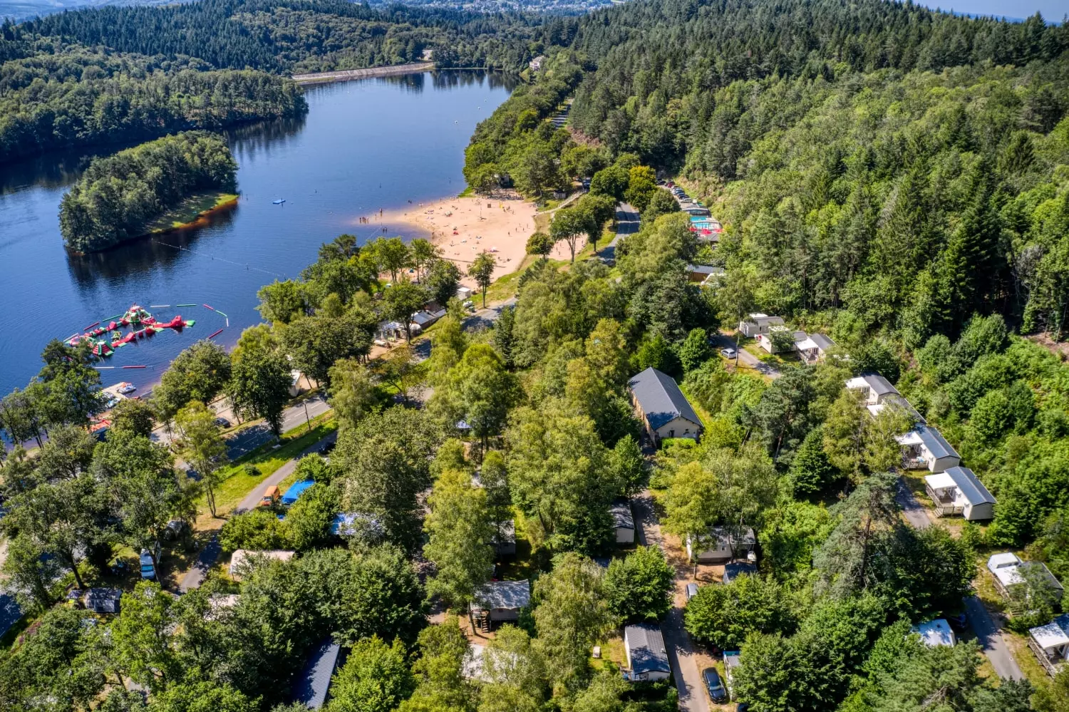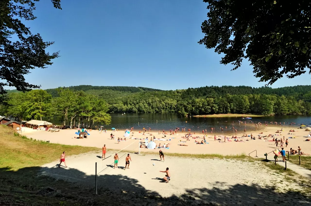 Der feine Sandstrand direkt am Campingplatz lädt Sie zum Baden, Tretboot- oder Kanufahren auf der 100 ha großen, herrlich blauen Wasserfläche des Lac des Barrousses ein (bewachter Badeplatz im Juli und August).