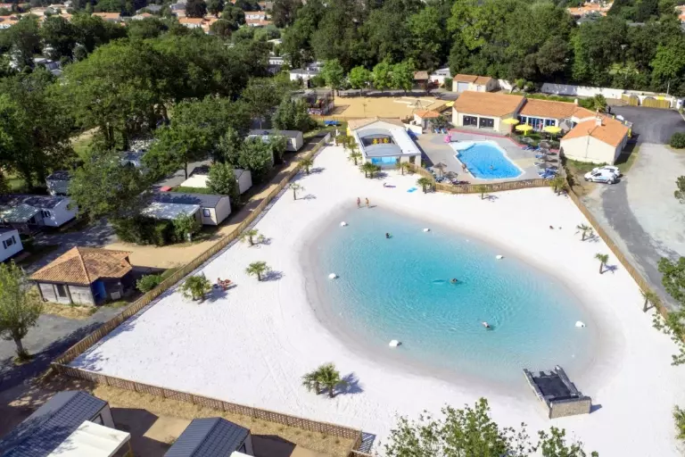 Im Herzen des Campingplatzes erwartet Sie eine 3000 m² große Lagune mit feinem Sand, Palmen und flachem Wasser – fast wie am Meer! Daneben laden weitere Einrichtungen zum Entspannen und Toben ein: