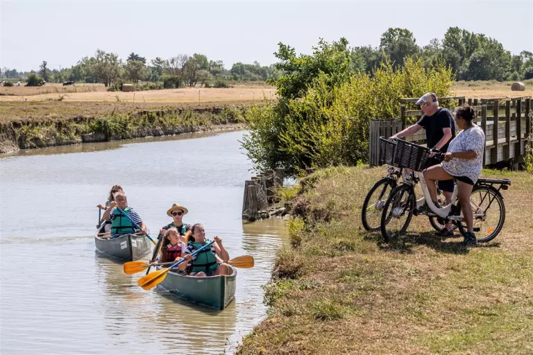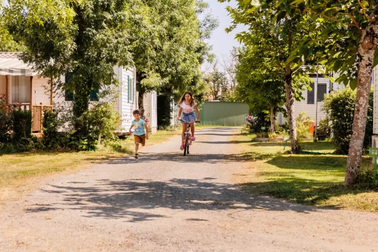 Die Umgebung des Campingplatzes ist ideal für alle, die Ruhe suchen und dabei das reiche Natur- und Kulturerbe der Vendée entdecken möchten. Zahlreiche Wander- und Radwege führen durch eine abwechslungsreiche Landschaft. Ein echtes Highlight ist die Passage du Gois – eine bei Flut überspülte Straße zur Insel Noirmoutier. Auch kulturell hat die Region viel zu bieten: Besuchen Sie das Vendée-Denkmal, das Château de Noirmoutier oder erleben Sie das Spektakel im Puy du Fou. Wer gern stöbert, wird auf den Sommermärkten und Kunsthandwerksfesten in Bois-de-Céné und Umgebung fündig.