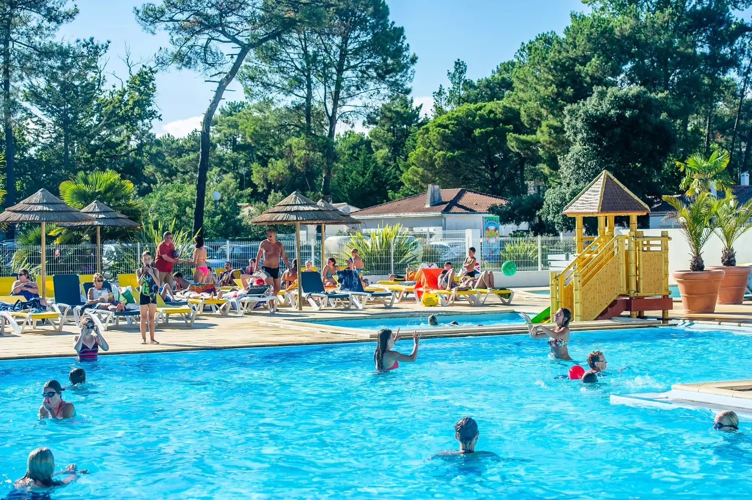 Ideal an der Küste der Vendée gelegen, finden Sie den Flower Campingplatz Les Dunes in Longeville sur Mer, gegenüber der Ile de Ré und angrenzend an La Tranche sur Mer. Wählen Sie ein Mobilheim im Herzen der Vendée und verbringen Sie einen Aufenthalt in einer außergewöhnliche Umgebung. Der Staatsforst, der den Ozean und das Land von Longeville trennt, beherbergt verschiedene seltene und teilweise geschützte Tier- und Pflanzenarten. Ein großer Teil des Waldes gehört zum Natura-2000-Gebiet Marais Poitevin. Zu Ihrer Verfügung stehen: Wasserbereich mit -1 beheiztes Hallenbad -1 beheizter Außenpool mit 2 Becken und Planschbecken -3-Bahnen-Rutsche, Wasserspiele Multisportplatz Boulodrome Wifi-Zugang (gegen Gebühr) Wäscherei (gegen Aufpreis) Auf dem Campingplatz stehen Ihnen für die Verpflegung zur Verfügung: - Snackbar (geöffnet ab April) - Lebensmittelgeschäft - Eiscreme Die Unterkünfte : Genießen Sie alle Reichtümer der Vendée und schätzen Sie den Komfort, den unsere Mobilheime und Stellplätze bieten. Alle Mobilheime sind mit Gartenmöbeln ausgestattet, sodass es sich gut im Freien bei einer Mahlzeit, einem Aperitif oder einem Gesellschaftsspiel vergnügen lässt. Die Mobilheime sind in der Regel mit einem Wohnzimmer und einer Essecke, einer ausgestatteten Küchenzeile, einem Badezimmer und einem separaten WC eingerichtet.