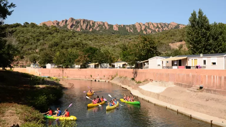 Campingplatz La Vallée du Paradis**** liegt in einer idyllischen Umgebung am Fluss Agay, nur 600 Meter von den Stränden entfernt. Hier können Sie das kristallklare Meer genießen, das bequem mit dem Boot oder Kajak erreichbar ist. Der Campingplatz bietet somit die perfekte Balance zwischen Natur, Abenteuer und Entspannung.