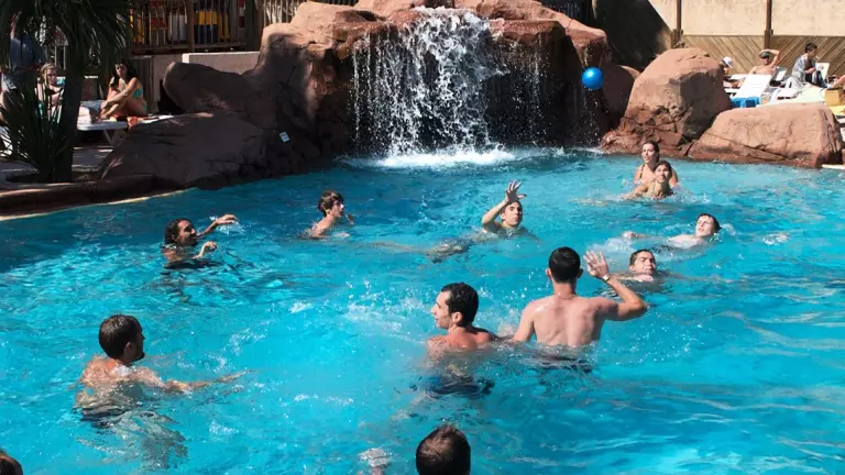 Ein wahres Highlight des Campingplatzes ist der großzügige Wasserpark, der auf 550 m² zahlreiche Attraktionen für die ganze Familie bereithält. Mit 3 Rutschbahnen, einem beheizten Pool (100 m²) mit Wildfluss, Sprudelbädern, Wasserstrahlen und einem Wasserfall sorgt der Bereich für endlosen Spaß. Das Planschbecken ist ideal für die Kleinsten, und das tropische Ambiente, umgeben von exotischer Vegetation und Palmen, schafft eine entspannte Urlaubsatmosphäre. Das Beste: Der Wasserbereich ist das ganze Jahr über geöffnet.